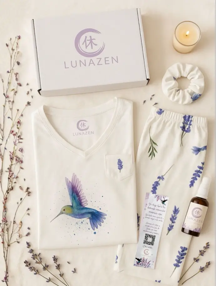En Lunazen transformamos una simple pijama en un ritual de descanso, una experiencia que abraza tu cuerpo, calma tu mente y te acompaña a reconectar contigo cada noche.